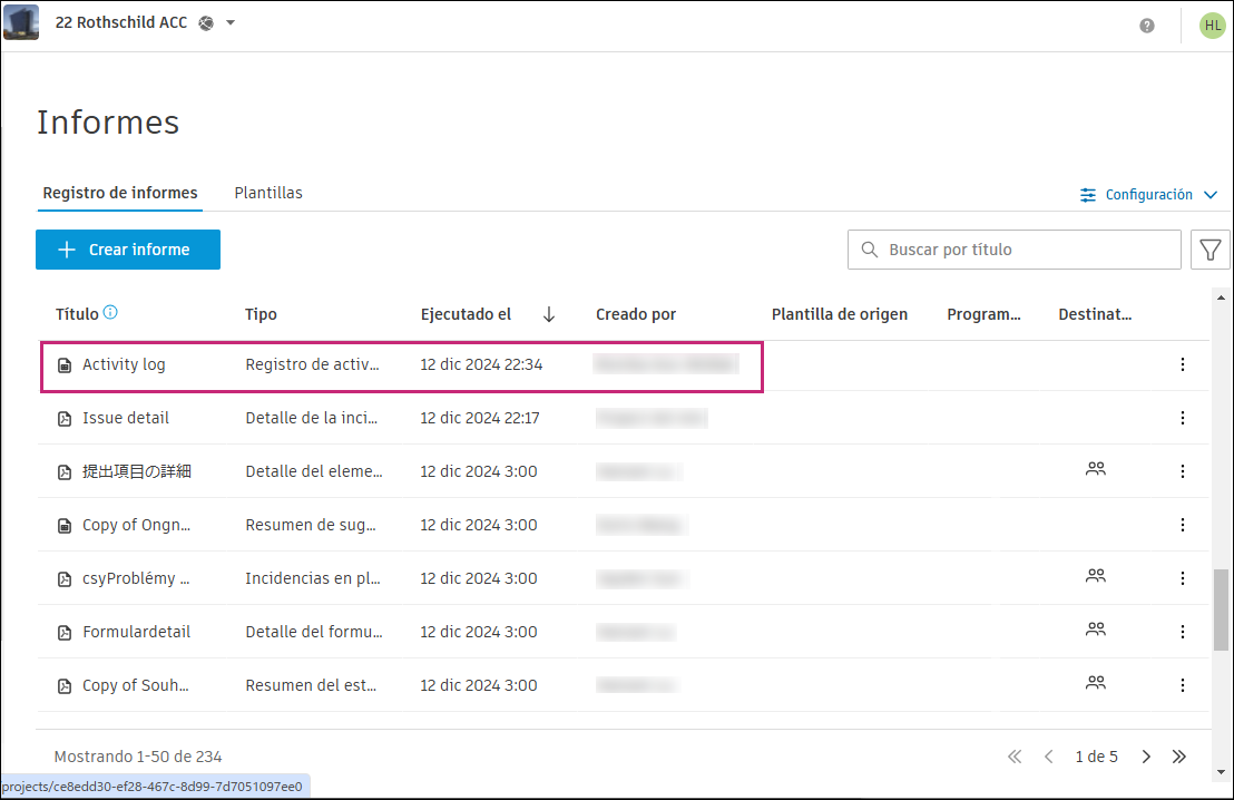 Cuando el informe esté listo, podrá descargarlo haciendo clic en el botón Descargar informe.