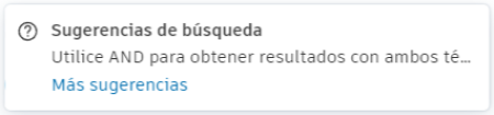Ofrecen instrucciones para utilizar operadores de búsqueda complejos, incluidos operadores booleanos, caracteres comodín y caracteres especiales. Se muestra un consejo seleccionado aleatoriamente. Haga clic en Más consejos para mostrar todos los consejos de búsqueda que también se detallan en la sección Operadores de búsqueda que aparece a continuación.