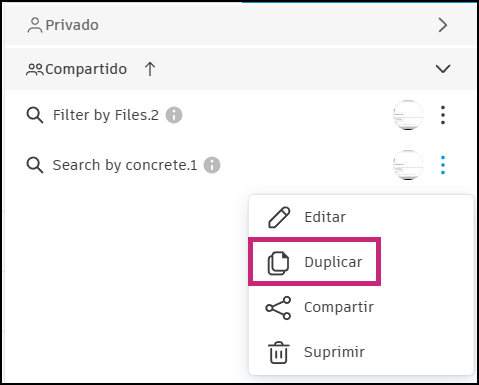 Puede duplicar una búsqueda guardada que haya compartido o una que otro administrador de proyectos haya compartido con usted.