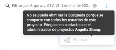 junto a la búsqueda compartida guardada correspondiente.Puede eliminar una búsqueda guardada que otro administrador de proyectos comparte con usted de forma individual.