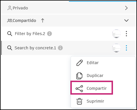 La búsqueda guardada será Privada por defecto. Si es necesario, puede compartir la búsqueda de la forma habitual.