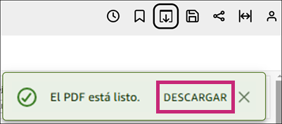 Para descargar el panel principal como archivo PDF, haga clic en Descargar en el mensaje.