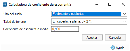 Calculadora de VC del método racional. Gracias al uso generalizado de tablas de coeficientes de escorrentía sugeridos, esta calculadora integrada acelera la definición de características de cuencas vertientes. Las directrices locales pueden diferir de los valores de la calculadora y, en los casos en que los valores difieran, se deben utilizar los valores recomendados a nivel local.