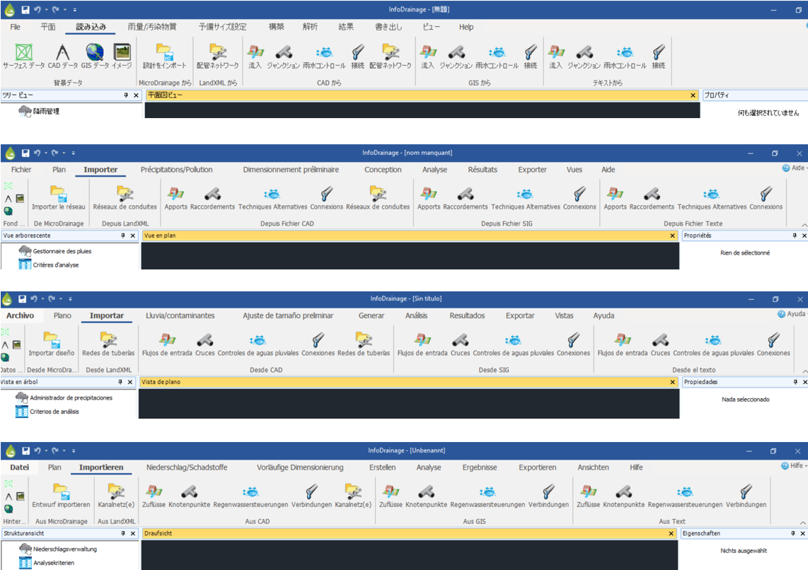 El idioma por defecto de InfoDrainage es inglés de EE. UU.