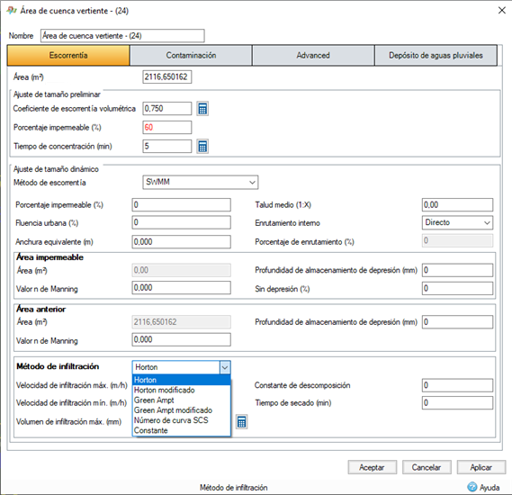 InfoDrainage ahora admite métodos de escorrentía SWMM, incluidos varios métodos de infiltración.