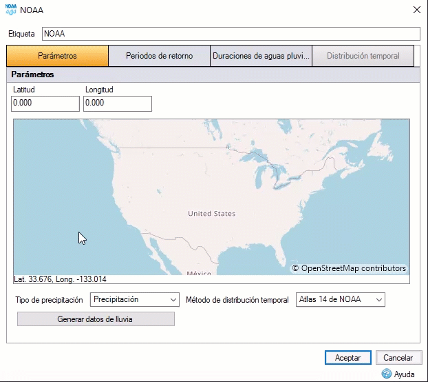 InfoDrainage se conecta ahora al sitio web de NOAA de EE. UU. para reunir los últimos patrones temporales y de lluvia de Atlas 14 necesarios a fin de generar eventos de lluvia de diseño. La lluvia de NOAA también incluye los últimos patrones temporales de NRCS que se suelen necesitar para los eventos de lluvia del Atlas 14.