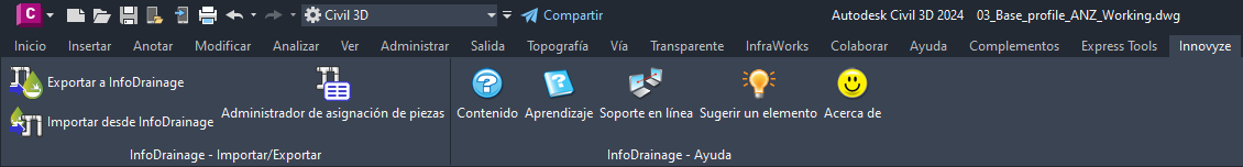 Módulo de extensión para Civil 3D® 2019, 2020 y 2021 que permite importar y exportar archivos de InfoDrainage en Civil 3D®. De este modo, los datos de InfoDrainage se convierten en objetos de Civil 3D® a través de un administrador de asignación de piezas, lo que ofrece las siguientes ventajas: