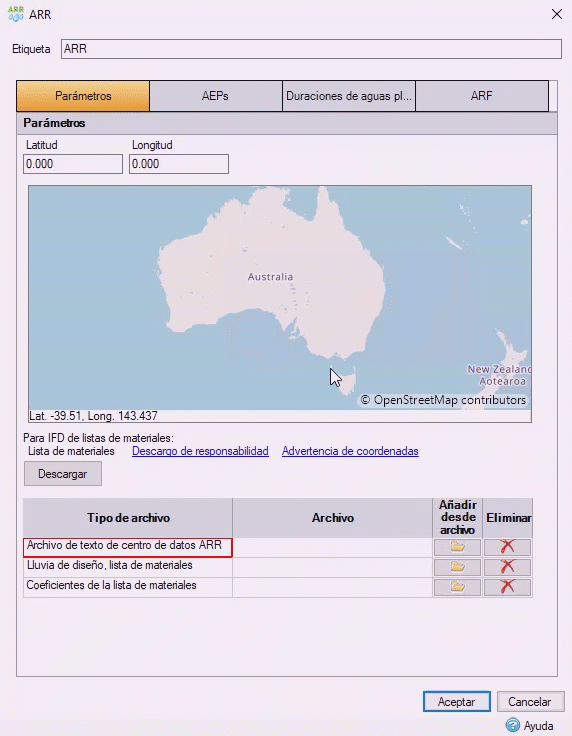 InfoDrainage se conecta ahora al sitio web de BOM de Australia para recopilar los datos de lluvia de ARR19 a fin de generar los eventos de aguas pluviales de flujos de trabajo de diseño.