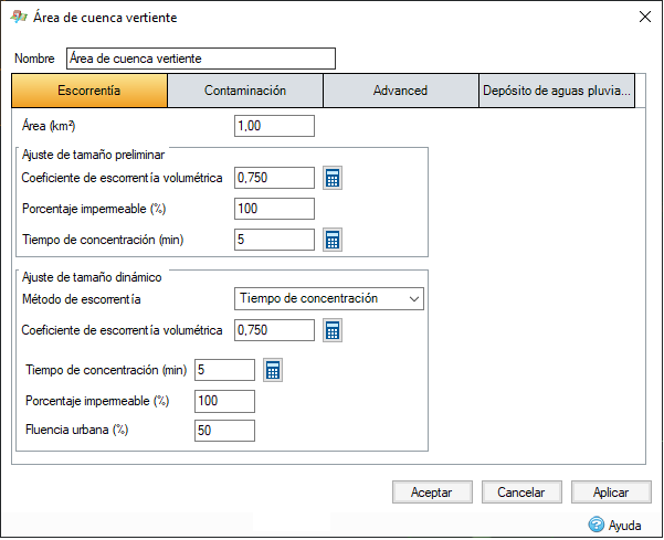 Opciones ampliadas de ajuste de tamaño preliminar. Configure opciones de ajuste de tamaño preliminar (método racional) y análisis dinámico independientes en las mismas cuencas vertientes para tener en cuenta las distintas metodologías disponibles.