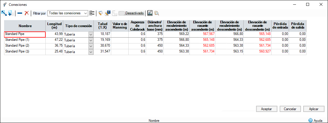 Sincronización de las elevaciones en las bocas de alcantarilla y las conexiones. Esto significa que si se edita la elevación de cobertura en el formulario Conexiones, se actualizará la boca de alcantarilla y viceversa.