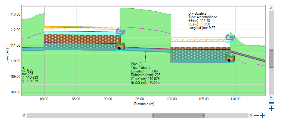Controles de aguas pluviales con controles de aguas pluviales: InfoDrainage puede detectar conflictos entre diferentes tipos de controles de aguas pluviales. Esto permite un diseño más coherente y eficiente, lo cual es crucial para una gestión eficaz del agua y una protección ambiental.