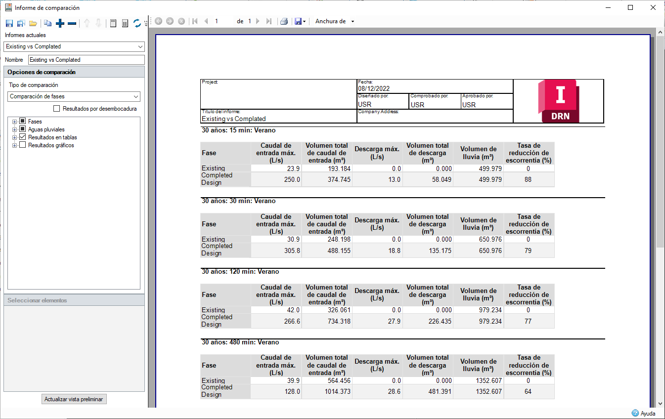 Estas mejoras están diseñadas para proporcionarle un conjunto más completo de datos, lo que permite una comprensión más completa del rendimiento del sistema de drenaje. Estos nuevos atributos en el resumen de resultados de la simulación garantiza permiten tener toda la información necesaria al alcance de la mano para tomar decisiones de diseño fundamentadas, lo que en última instancia conduce a soluciones de drenaje más sólidas y eficientes.