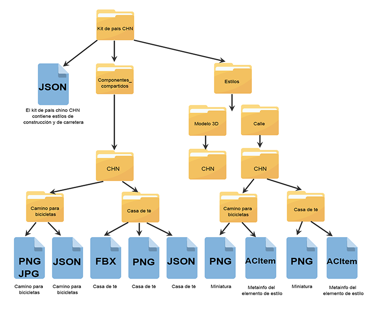 Al crear bibliotecas de contenido personalizadas, como kits de país para InfraWorks, que son paquetes de contenido pertinentes para una determinada región geopolítica, es importante usar convenciones de denominación coherentes, adoptar unas directrices de estructura de archivos estándar y utilizar el nivel de detalle adecuado.