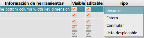 Visible: active esta casilla para establecer como visible la dimensión clave de esta fila en la pila en forma de atributo del componente paramétrico seleccionado.