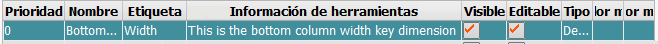 Etiqueta: el valor de etiqueta de una dimensión clave representa el nombre que se ha asignado al atributo correspondiente en la pila. Por ejemplo, si se cambia "BottomColumnWidth" a "Anchura" en la columna de etiqueta, se actualizará la visualización de "BottomColumnWidth" a "Anchura" en la pila.