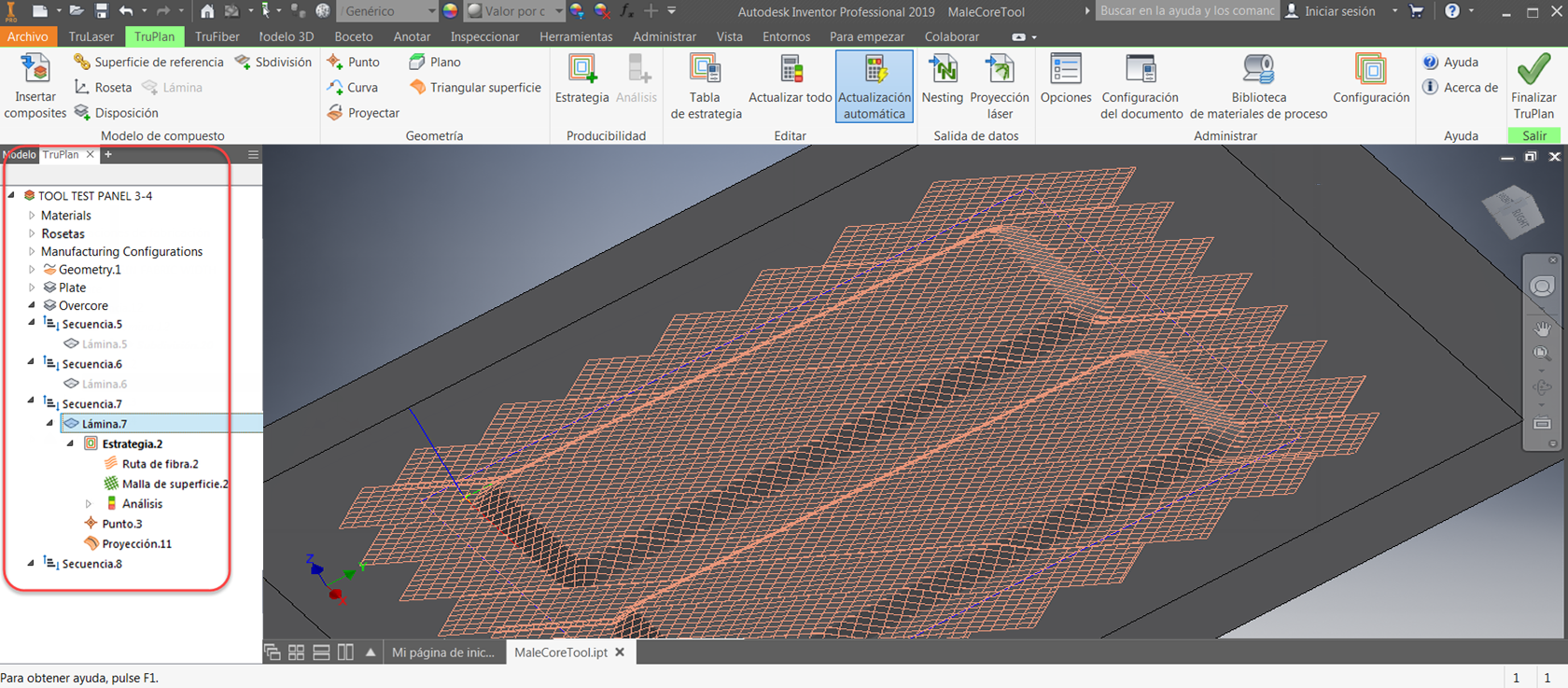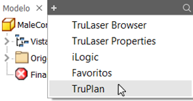 Para acceder al navegador, haga clic en + junto a la ficha Modelo del navegador de Inventor y, a continuación, seleccione TruPlan en la lista desplegable.