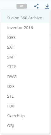 Lorsque vous téléchargez une conception Fusion, vous avez la possibilité de sélectionner un format.
