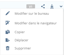 - Menu déroulant de fichiers. Placez le curseur sur la ligne du fichier que vous souhaitez modifier et cliquez sur le bouton de la liste déroulante.