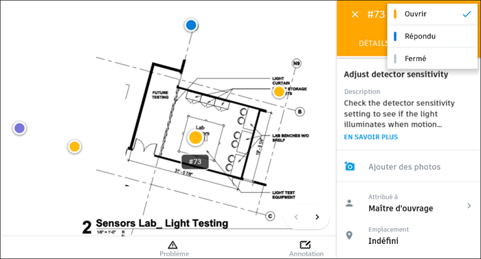 Conseil : Vous pouvez également appuyer sur une épingle dans le visualiseur pour afficher ou modifier les problèmes associés à un document ou à un modèle.