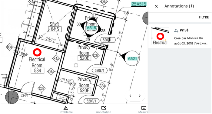 Créez, affichez, modifiez et gérez des annotations dans des documents 2D et des modèles 3D. Pour plus d'informations sur les fonctionnalités d'annotation avec l'application Android, reportez-vous à la rubrique Référence de fonctionnalités de l'application mobile BIM 360.