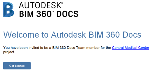 Pour commencer à utiliser BIM 360 Docs, vous recevez d'abord un e-mail vous invitant à rejoindre un projet BIM 360 Docs.