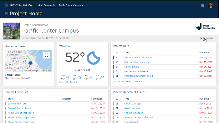 Profitez d'une expérience personnalisée en ajoutant, supprimant ou réorganisant les cartes dans le tableau de bord Project Home.
