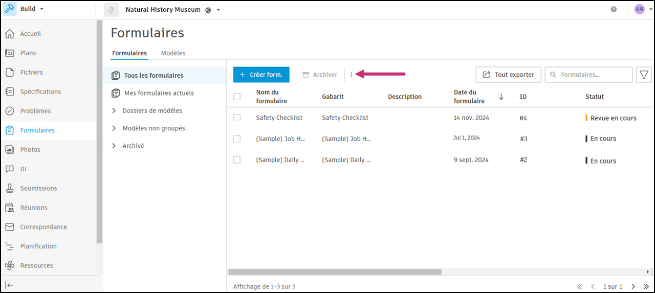 Dans l’onglet Formulaires, cliquez sur l’icône de menu Plus
