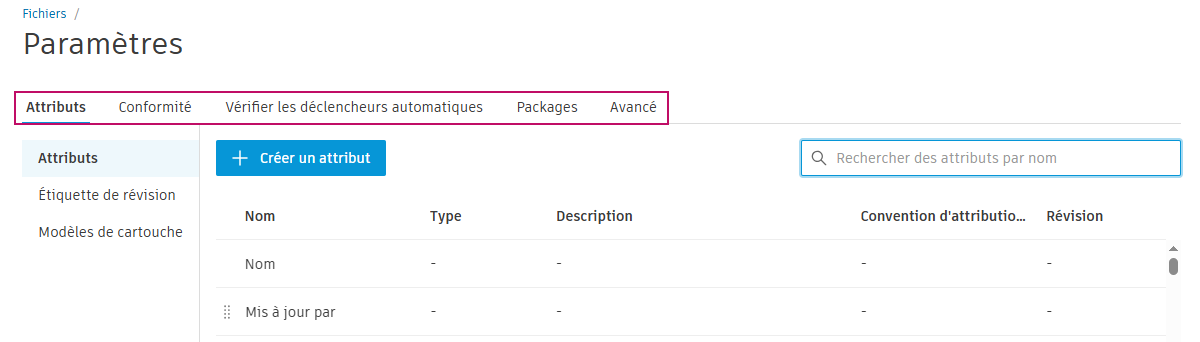 Dans l’exemple ci-dessous, le sous-onglet Attributs est sélectionné.