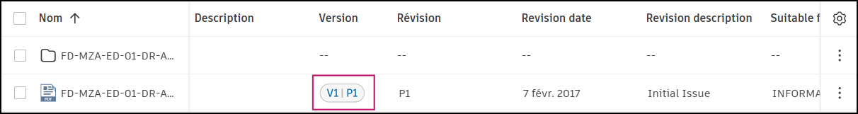 Le workflow d’étiquette de révision vous permet d’afficher des informations de révision à côté du numéro de version du fichier.