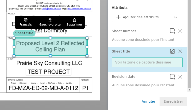 Dessinez une zone suffisamment grande pour capturer l’attribut dans le cartouche pour les pages qui utilisent ce modèle.