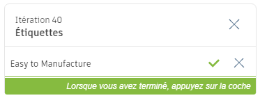 Cliquez sur la coche , puis sur Terminé pour appliquer l’étiquette à l’itération.