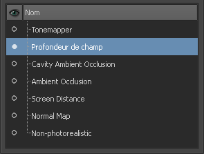 - Activez le filtre Occlusion ambiante d'empreinte en cliquant sur l'onglet Filtres de fenêtre de présentation, puis en cochant la case à gauche du nom de l'élément Occlusion ambiante d'empreinte (ou sur le nom lui-même) afin que l'icône en forme d'oeil s'affiche.