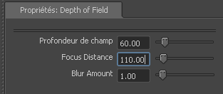 - Affichez les propriétés du filtre Profondeur de champ en cliquant sur le nom Profondeur de champ.