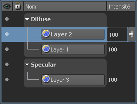 Par exemple, si vous exportez les trois couches de peinture suivantes pour un modèle à l'aide de l'argile, les couches de peinture exportées (avec les caractères génériques par défaut du Nom du fichier gabarit) sont renommées de la manière suivante : Layer_Clay_Diffuse_Layer1, Layer_Clay_Diffuse_Layer2, Layer_Clay_Specular_Layer3.