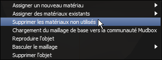 - Cliquez avec le bouton droit de la souris sur un maillage et choisissez Supprimer les matériaux non utilisés.
