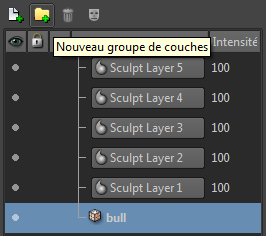 - Dans la barre de menus Couches de sculpture, cliquez sur l'icône Nouveau groupe de couches.