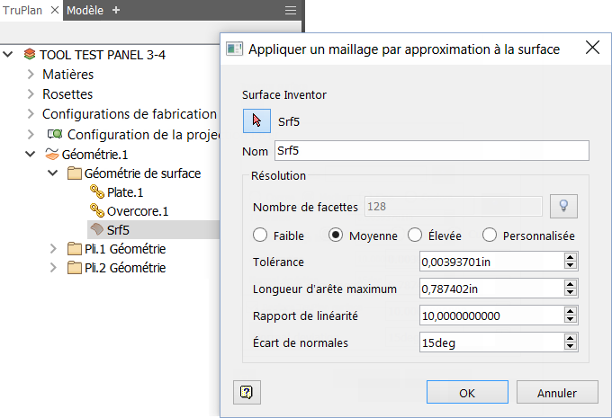 Pour modifier les paramètres de maillage par approximation d'une surface