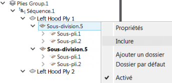 Si des sous-plis sont inclus dans votre projet, ils sont organisés en une ou plusieurs sous-divisions sous un pli dans le navigateur de TruPlan. Si un pli contient plusieurs sous-divisions, assurez-vous d'inclure celle que vous souhaitez intégrer à la configuration active.