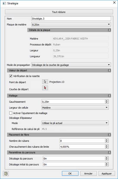 - Définissez les valeurs restantes appropriées pour votre mode de propagation, notamment Maillage, Placement de fibre, Paramètres du parcours et Drapage.
