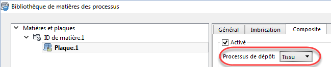 - Dans l'arborescence, sélectionnez la plaque sous la matière et cliquez sur l'onglet Composite.
