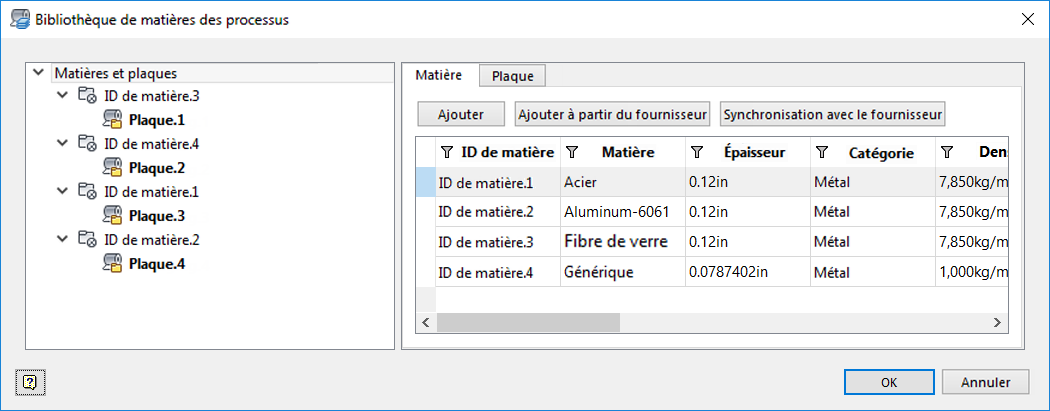 Avant de créer des stratégies de fabrication dans TruPlan, vérifiez les paramètres de dépôt et de plaque des matières. Ces derniers ne peuvent être modifiés que dans la boîte de dialogue Bibliothèque de matières. Votre modèle doit comporter au moins un pli.