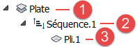 Une séquence est un groupe de plis déposé sur une surface au cours de la même opération. Par exemple, vous pouvez souhaiter appliquer des plis mouillés au cours de la même opération avant qu'ils sèchent. Tous les plis sont triés en tant que séquences dans TruPlan. En règle générale, les séquences sont disponibles dans votre fichier de composites importé, mais vous pouvez également ajouter des plis à une séquence, ou encore créer une séquence lors de l'ajout d'un pli à une couche.
