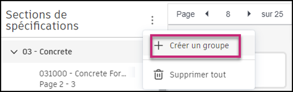 3 : lorsque vous sélectionnez le type de format de spécification Autre/Inconnu, le tri est initialement alphanumérique. Si aucun code n’est trouvé ou ajouté, les sections sont triées par numéro de page.