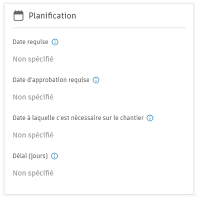 Cette section contient des informations de base sur l'élément de soumission, telles que la description, le type et la section de spécifications.