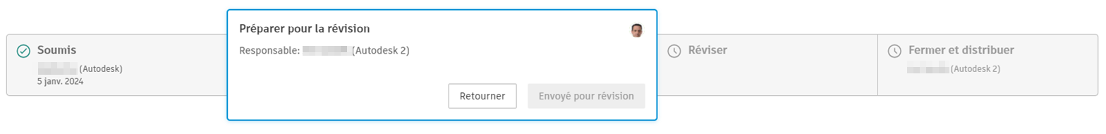 Lorsqu'un élément est à l'état de révision, la barre affiche « En attente de révision de » au lieu de « Réviseurs » pour mieux indiquer qui doit encore effectuer une action.