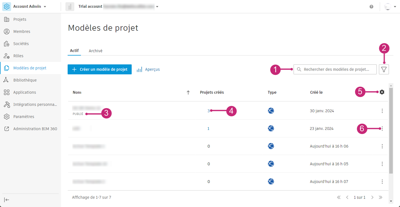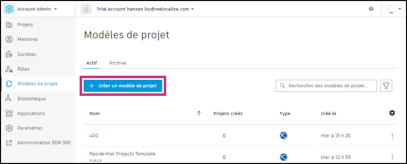 Dans cette rubrique, vous apprendrez à utiliser l'outil Modèles de projet dans Account Admin pour :