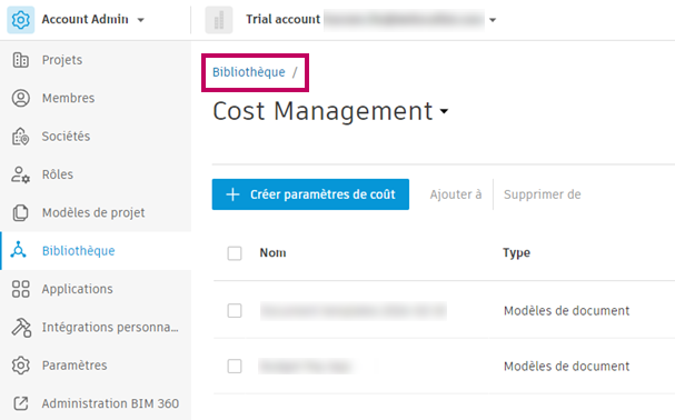 Vous devez disposer d’un accès d’administrateur de compte pour accéder à la Bibliothèque et créer des modèles au niveau du compte.