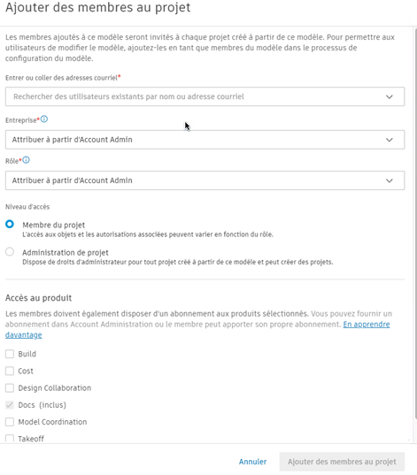 Important : Si vous désactivez l'accès à Docs, le membre perdra son accès à tous les produits et sera supprimé du projet.