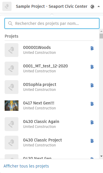 Ouvrez le sélecteur de projet et cliquez sur Afficher tous les projets au bas du menu.