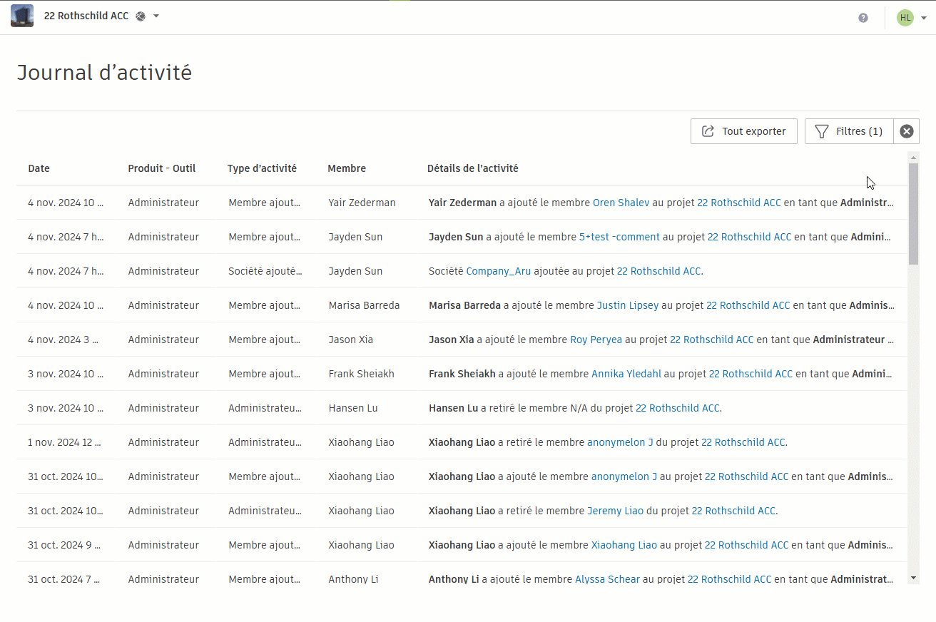 Vous pouvez exporter toutes les données d’activité ou les données d’activité filtrées.